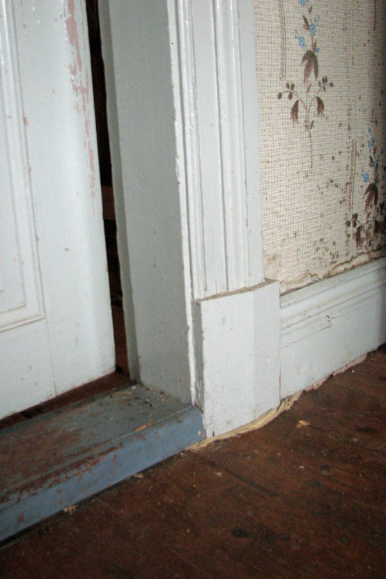 | Fernissat golv. | Tröskel, skurkloss, dörrfoder, golvlist. |