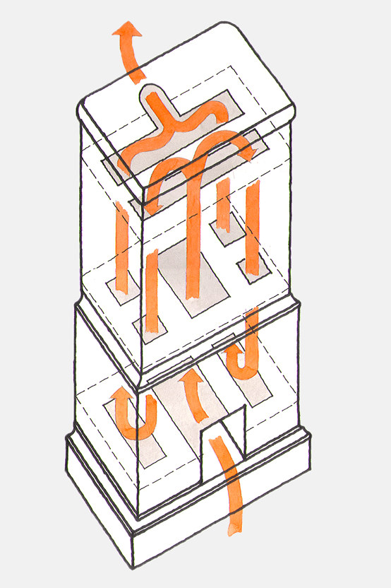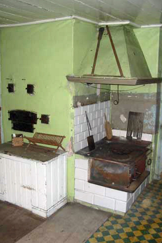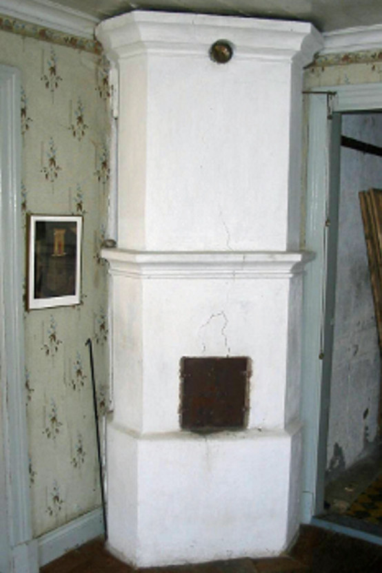 | Rörspis i salen. | Rökkanaler i kakelugn och rörspis |