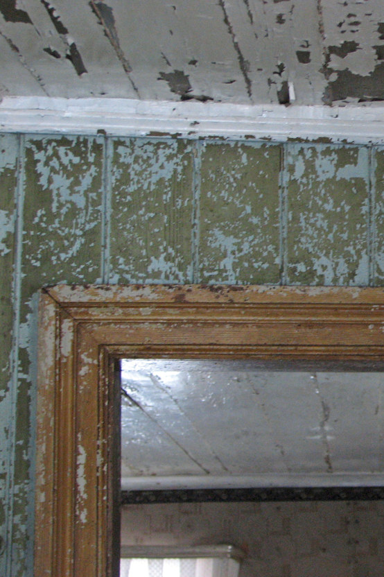 Väggarna är klädda med pärlspont, 22 millimeter tjock och 5½ tum bred. Väggen mot skafferigången har handhyvlad pärlspont som är 7 tum bred. Panelen är gråblå (NCS 2010-G10Y), en färgsättning från 1920-40-talet. Ursprungligen har panelen varit grågrön. Golvlisten är 1 tum tjock och 5 tum hög.